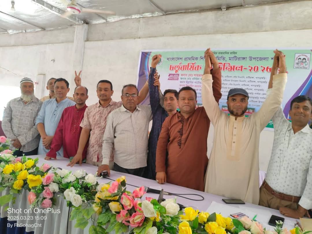 বাংলাদেশ প্রাথমিক শিক্ষক সমিতি মাটিরাঙ্গা উপজেলা শাখার চতুর্বার্ষিক কাউন্সিল অনুষ্ঠিত হয়েছে। রোববার (২৩ মার্চ) দুপুরের দিকে মাটিরাঙ্গা চৌধুরী কমিউনিটি সেন্টারে এ কাউন্সিল অনুষ্ঠিত হয়।