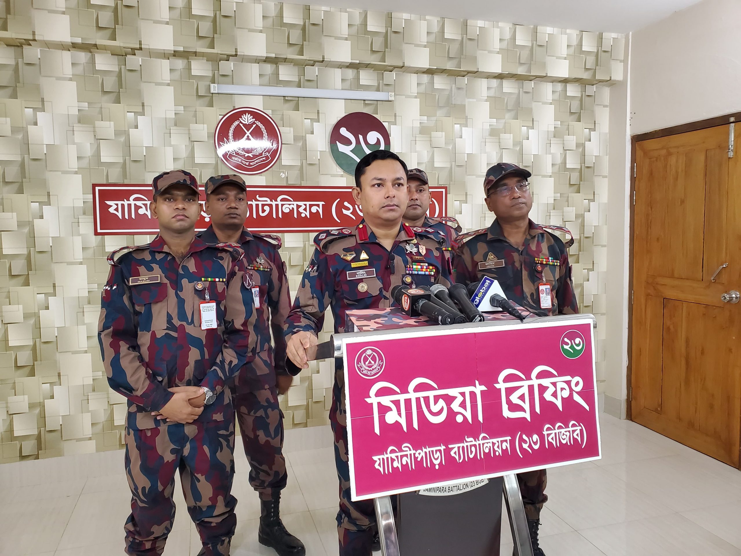 এসময় যামিনীপাড়া ব্যাটালিয়নের উপঅধিনায়ক (২৩ বিজিবি) মেজর মাসুম রানা প্রমুখ উপস্থিত ছিলেন।