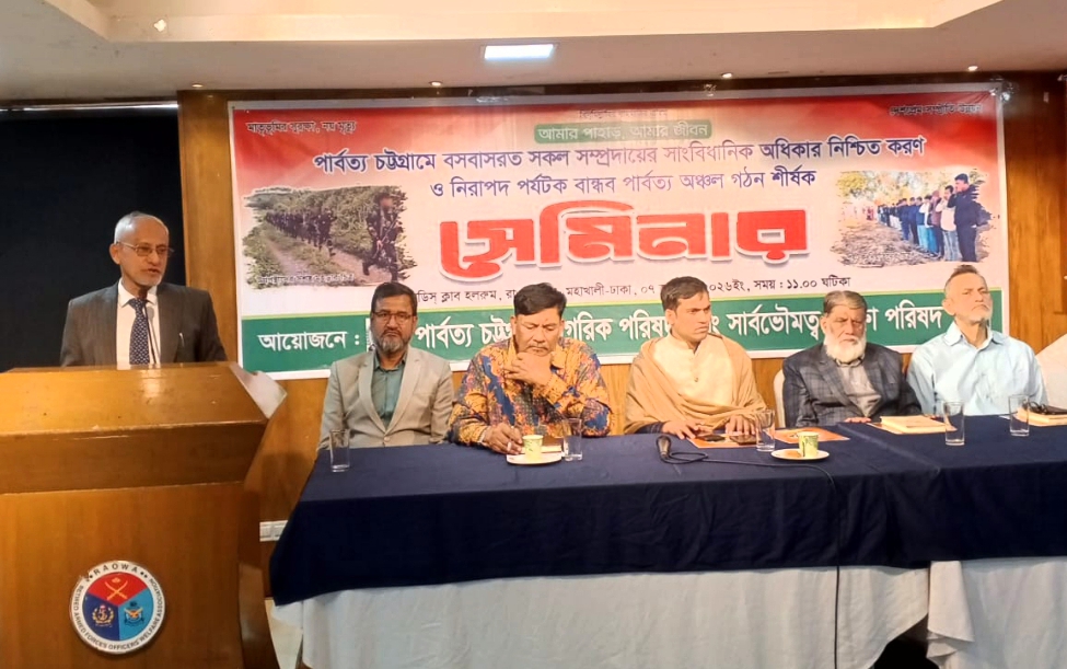 বুধবার (৭ জানুয়ারি) দুপুরে রাজধানীর রাওয়া ক্লাবে পার্বত্য চট্টগ্রামের সার্বভৌমত্ব ও নিরাপত্তা নিশ্চিত বিষয়ক সেমিনারে প্রধান অতিথি হিসেবে তিনি এ মন্তব্য করেন। সেমিনারে আয়োজন করেন, পার্বত্য চট্টগ্রাম নাগরিক পরিষদ ও সার্বভৌমত্ব সুরক্ষা পরিষদ।